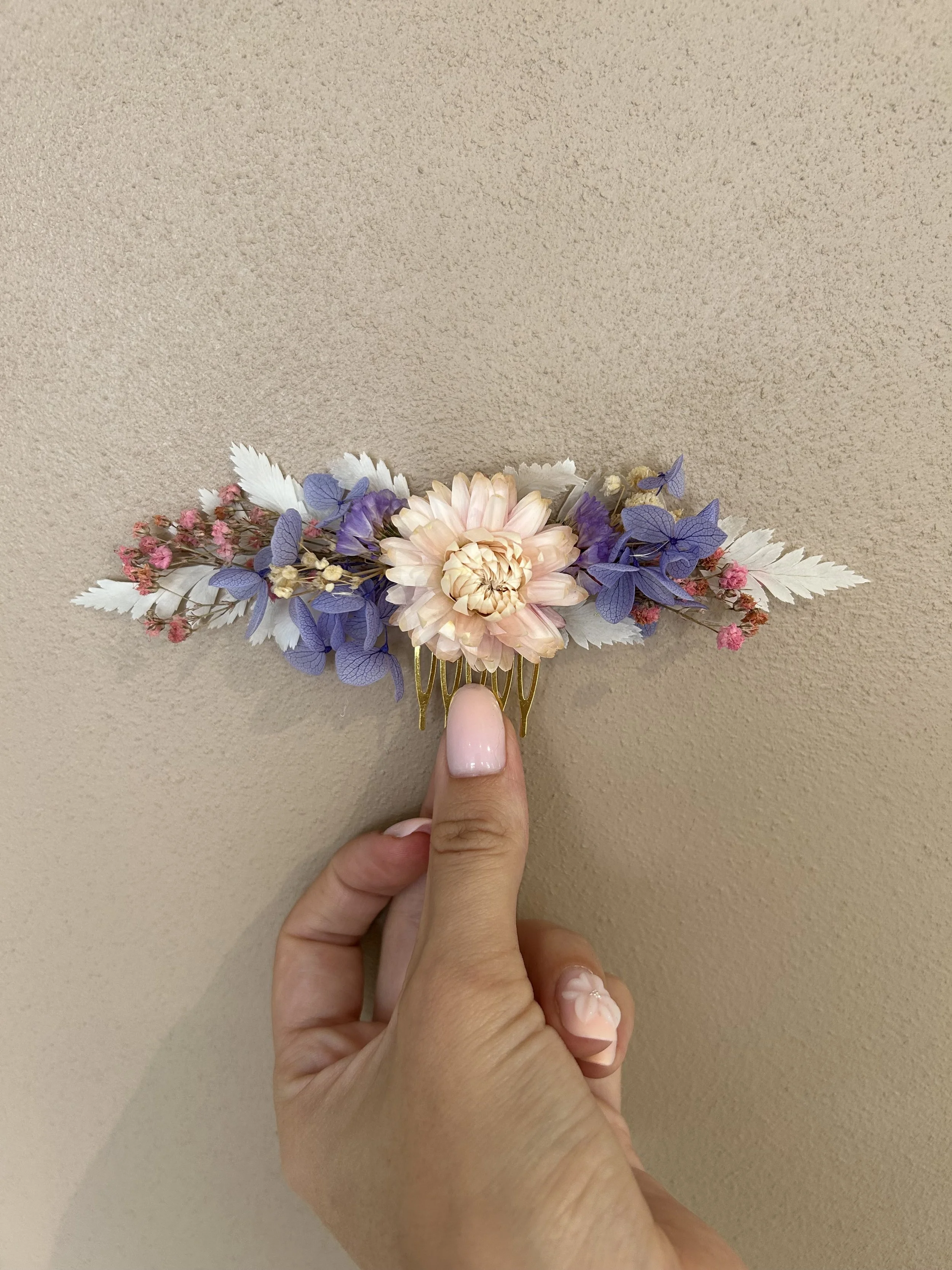 Ce peigne fait partie de la collection Bridgerton composée de plusieurs variétés de fleurs séchées et stabilisés dans les tons pastel.